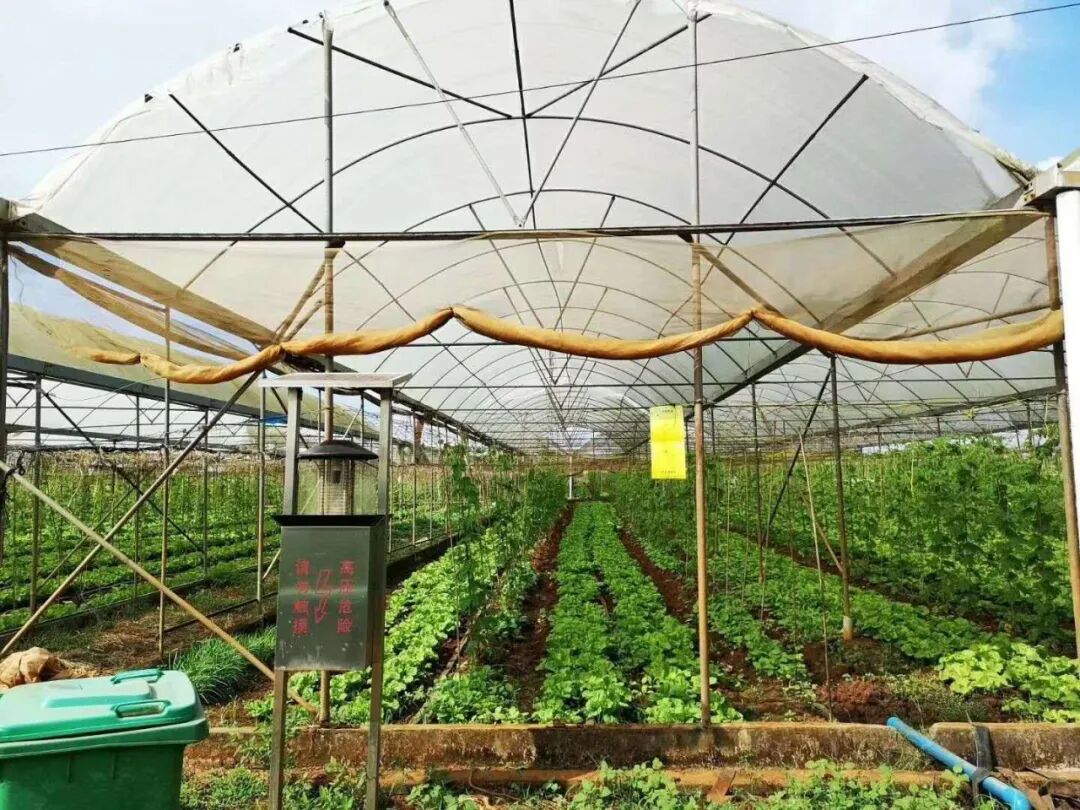 没有虫眼,长势都很好,但全程没有打过农药,这是怎么做到的?秘密武器在于种菜使用了中国热带农业科学院高建明博士研发的“防虫网新技术”,即晾地饿虫。技术核心是:搭建简易防虫网大棚,犁地后晾地一段时间,让防虫网里面的虫子饿死,而后再播种。